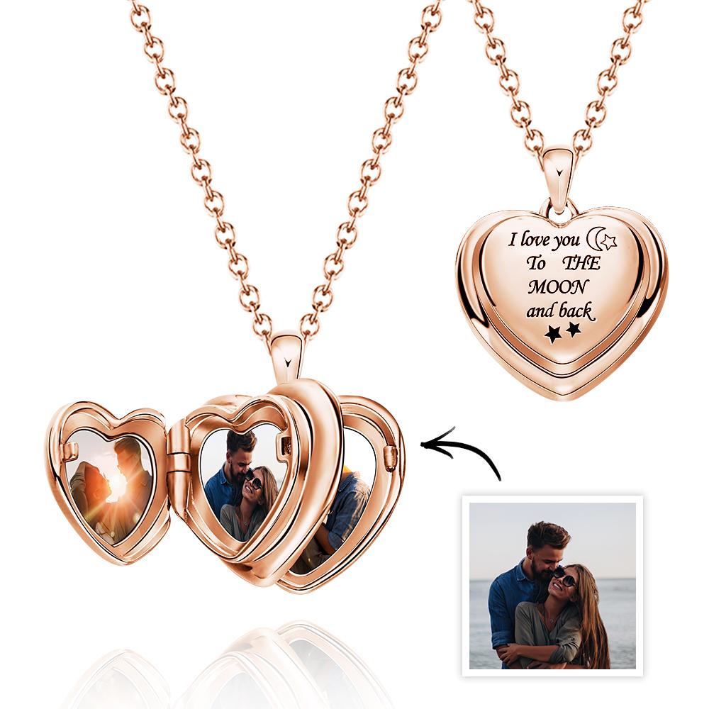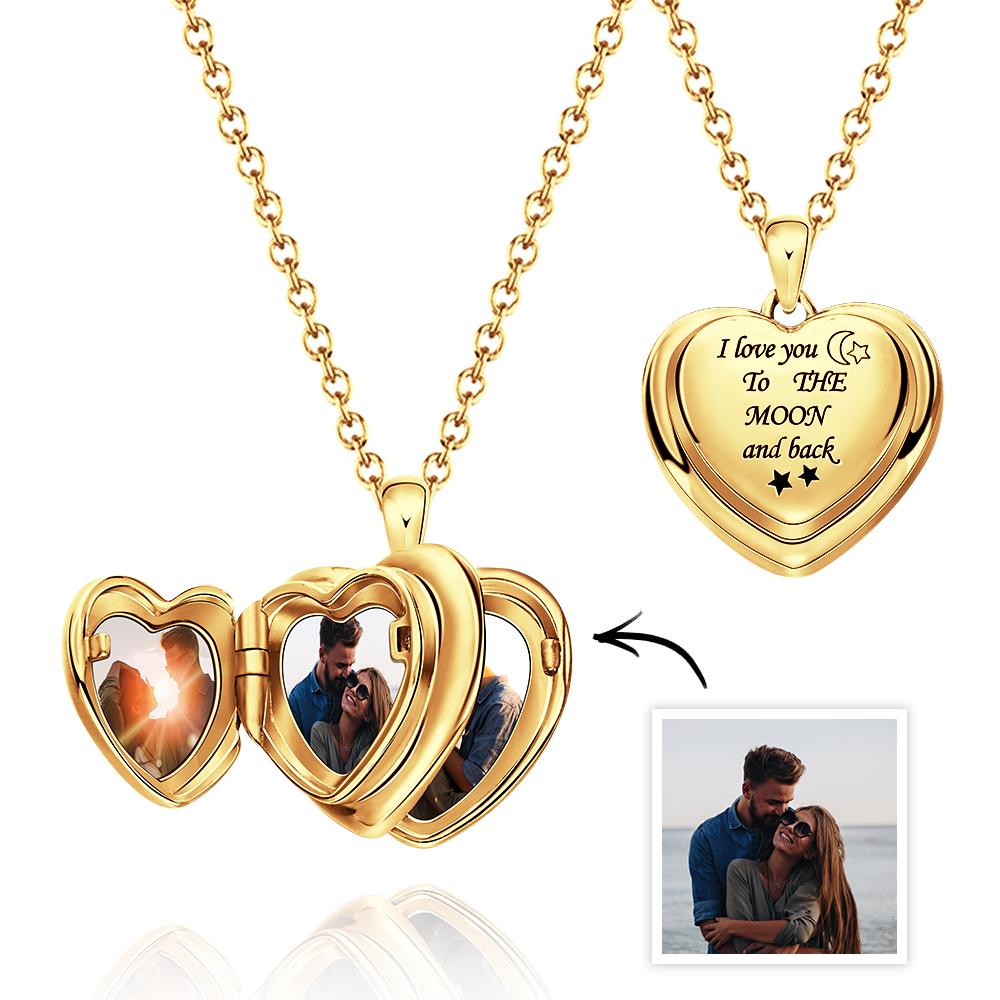 Lockets for women that hold pictures The necklace is designed to hold 4pcs pictures with engraved message in "I Love You To The Moon And Back". Romantic and Creative Ways To Say love and momery will be never disappeared. It is good choice for your lover,friends,family as a emotional souvenir gifts.