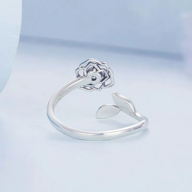 Silver Camellia Open Ring – Romantic Adjustable Promise Ring for Her Valentine’s Day Gift